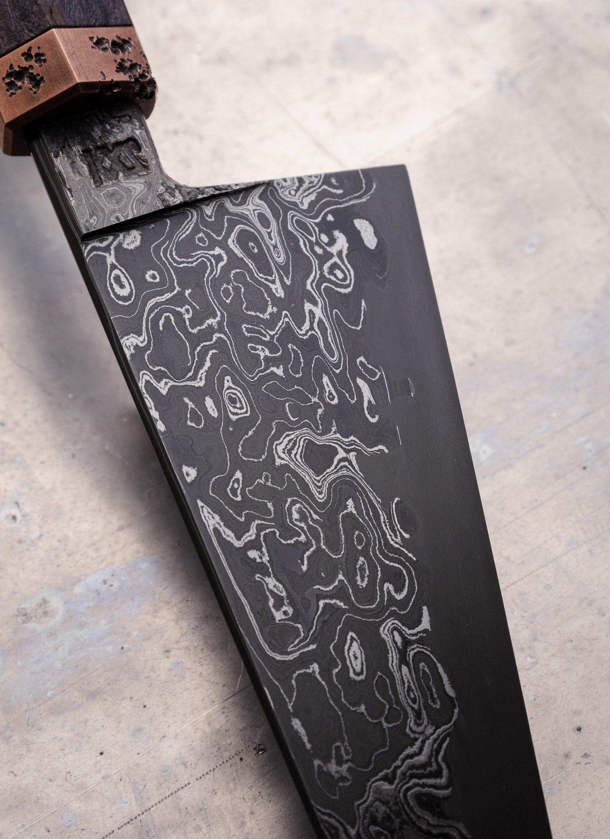 - Apex Ultra core with house-made carbon steel damascus cladding